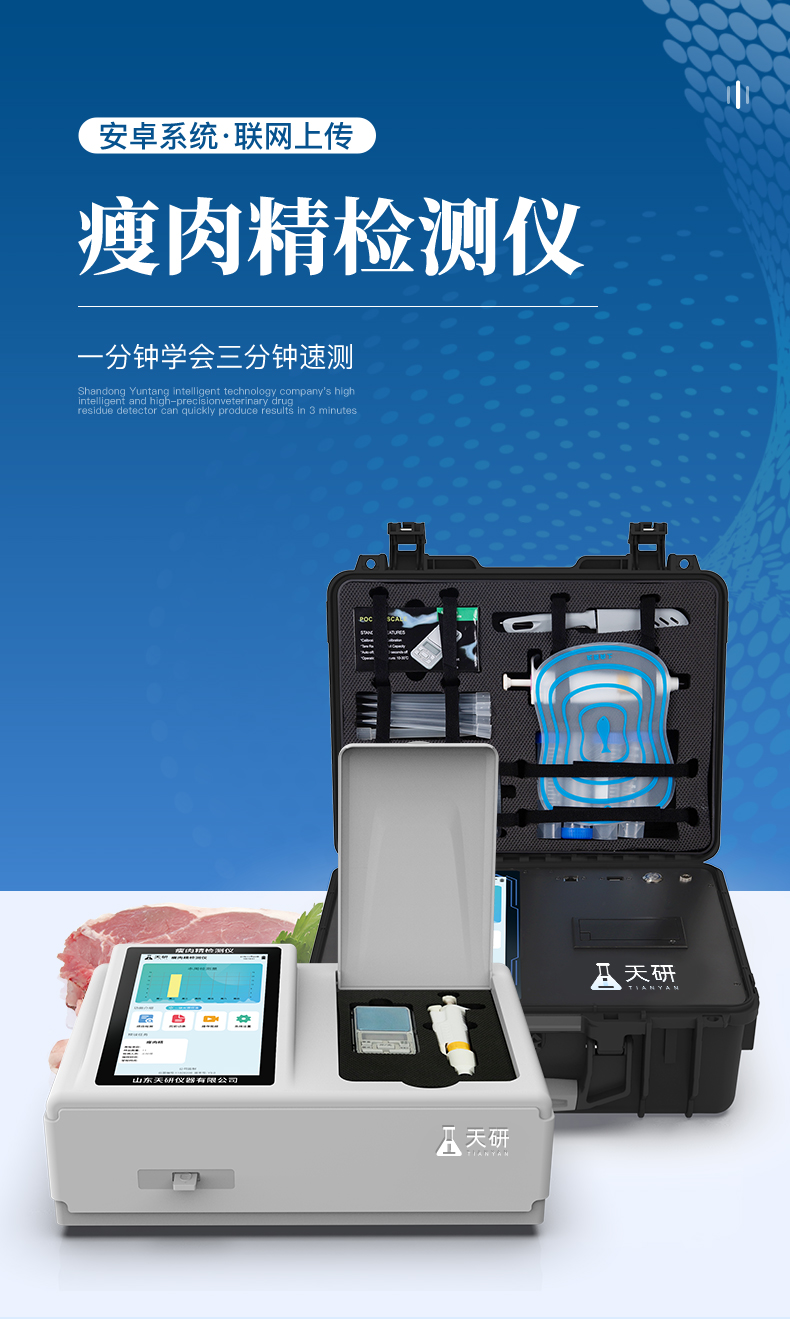 瘦肉精檢測儀可現(xiàn)場快速檢測鹽酸克倫特羅、萊克多巴胺、沙丁胺醇、己烯雌酚、喹乙醇等。儀器預(yù)留其他項(xiàng)目檢測程序和端口,根據(jù)日后需求可方便的自主增加檢測項(xiàng)目。日后可升級為檢測抗生素、獸藥殘留、動物疫病、病害肉、的綜合類型儀器