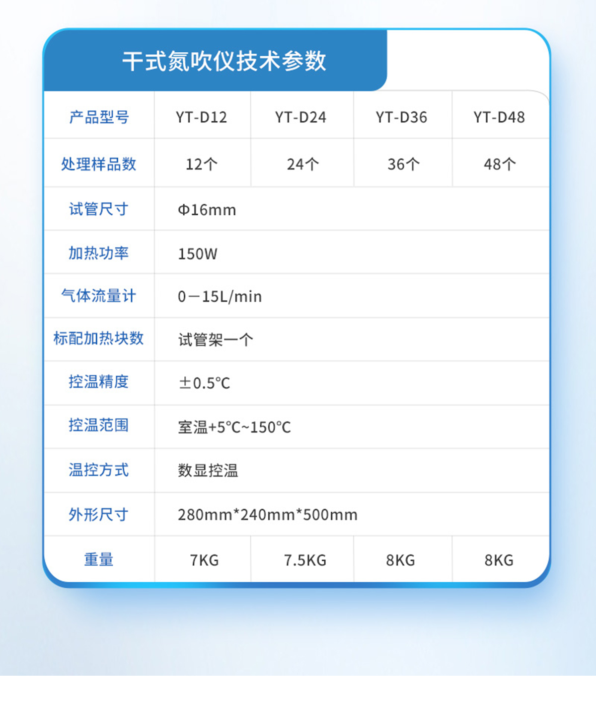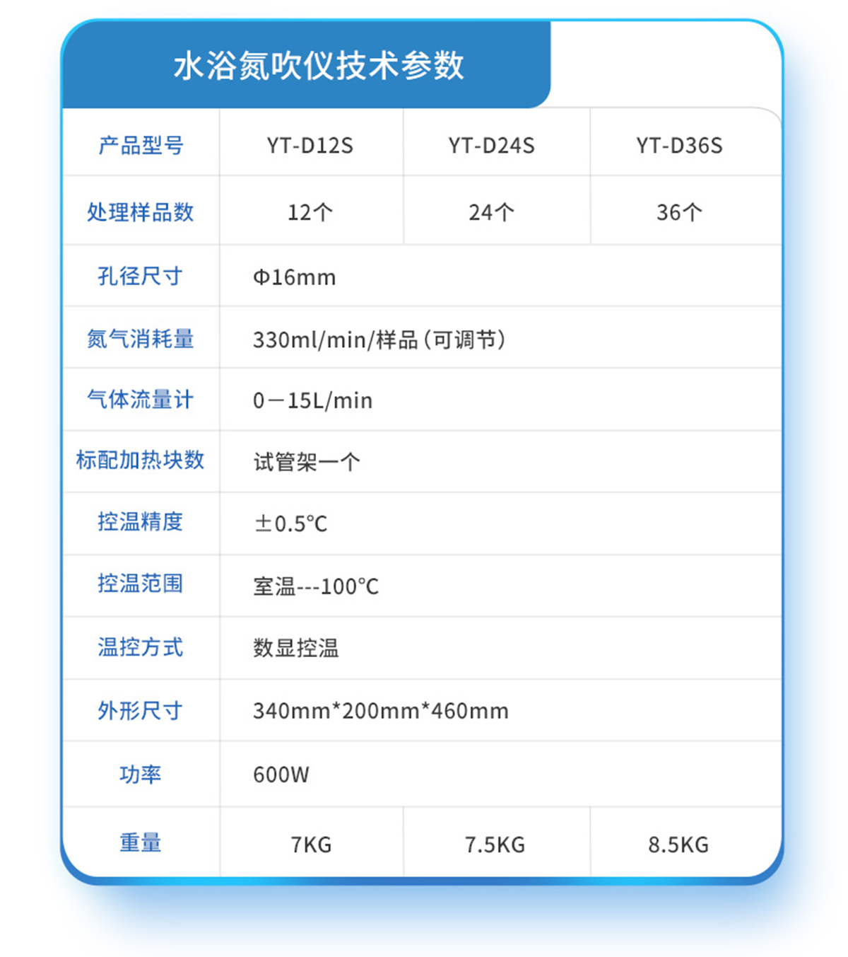 | YT-D12SY | 12個獨立控制 | 圓形水浴 | 10~29mm | 0--150mm | 360°C | ±0.5℃ | 室溫---100℃ | 4位數(shù)顯/PID調(diào)節(jié)/超溫報警 | 0~99h59min | 可控 0-15L/min | 330ml/min/樣品 | 1000W | 10KG |