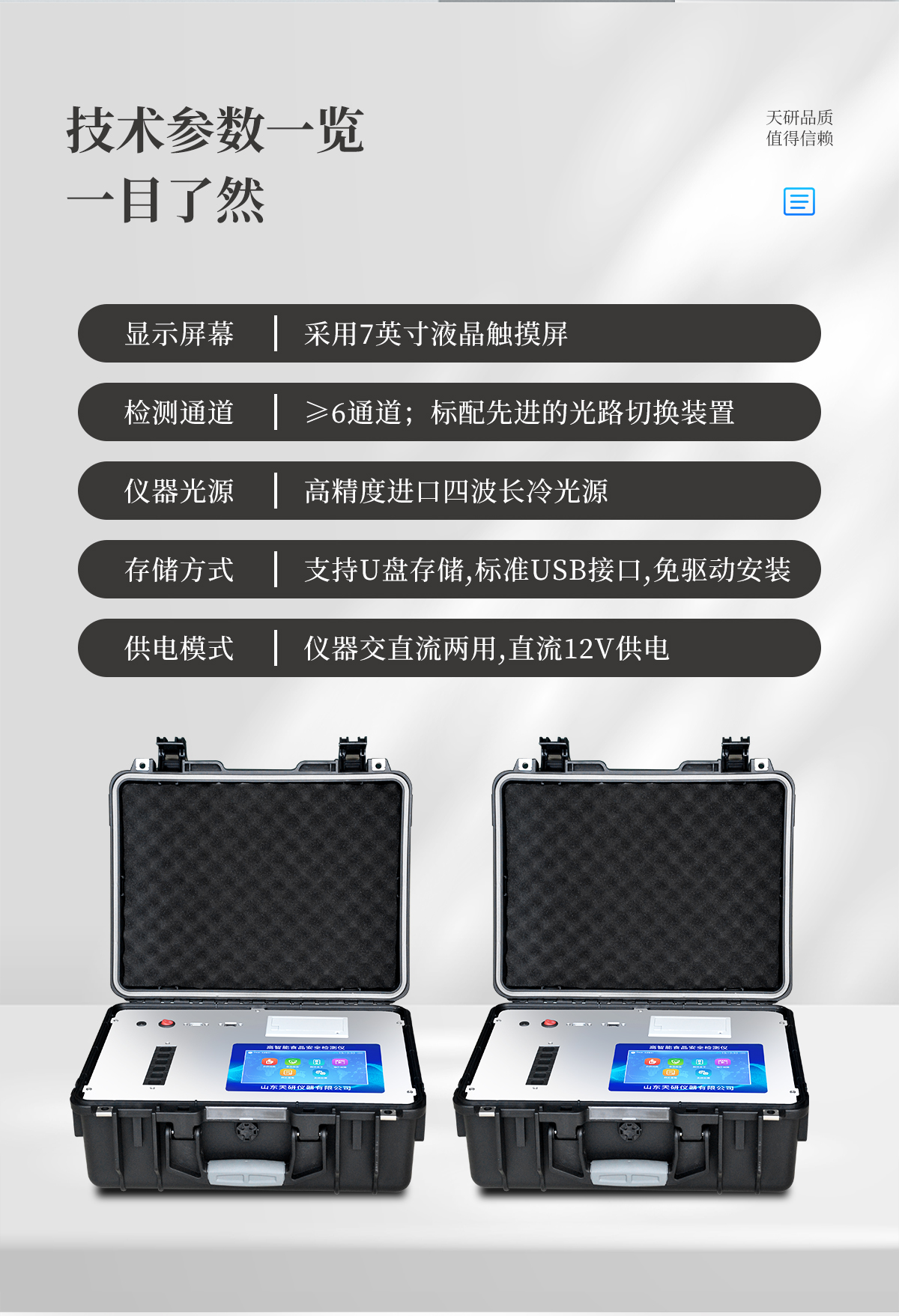| 儀器采用手提式一體化系統(tǒng)檢測技術(shù),將分光光度模塊、新型農(nóng)殘檢測模塊、數(shù)字化管理模塊、無線通訊模塊高度集成于一體,支持檢測200種食品安全檢測項(xiàng)目,同時(shí)預(yù)留升級檢測方法。 | 儀器檢測模塊標(biāo)準(zhǔn)化、智能化,檢測項(xiàng)目可隨意自由組合。檢測箱體內(nèi)置多個(gè)標(biāo)準(zhǔn)檢測單元,檢測模塊可以調(diào)整配置。 | 顯示屏幕:儀器采用10.1英寸豎向液晶觸摸屏顯,搭配運(yùn)行安卓智能操作系統(tǒng),主控芯片采用ARM Cortex-A7,RK3288/4核處理器,主頻1.88Ghz,操作方便,性能更強(qiáng)。 | 檢測通道:≥12通道;采用精密旋轉(zhuǎn)比色池設(shè)計(jì),使用同芯片同光源校準(zhǔn)精度,解決不同光源之間的誤差值,更加準(zhǔn)確**。(1-12通道間誤差0.1%,**號:ZL202022821055.2) | 儀器光源:高精度進(jìn)口四波長冷光源,每個(gè)通道均配置 410、520、590、630nm 波長光源,標(biāo)配**的光路切換裝置,**光路切換功能可實(shí)現(xiàn)64波長,并且所有檢測項(xiàng)目可實(shí)現(xiàn)所有通道同時(shí)檢測。 | 設(shè)備可一鍵校準(zhǔn),自動保存校準(zhǔn)數(shù)據(jù),自動對比校驗(yàn),得到精準(zhǔn)光源,采用Android SP存儲數(shù)據(jù),光源數(shù)據(jù)永不丟失,方便每一次使用。 | 通訊接口:配備無線通信模塊、4G(APN)通訊模塊、藍(lán)牙傳輸,同時(shí)具有雙USB接口以及RJ45網(wǎng)線接口,可以多方式實(shí)現(xiàn)數(shù)據(jù)保存及數(shù)據(jù)傳輸 | 存儲方式:支持U盤存儲,標(biāo)準(zhǔn)USB接口,免驅(qū)動安裝。檢測結(jié)果存儲容量20萬條以上,可生成Excel表格進(jìn)行拷貝,并具有登錄保護(hù)功能。 | 智能化操作系統(tǒng): | 1)操作系統(tǒng):儀器可在同一檢測界面自動對應(yīng)相關(guān)檢測通道,一次性選擇1-12個(gè)樣品名稱,無需退出界面,節(jié)省操作時(shí)間。并可以對每個(gè)通道屬性和樣品信息單獨(dú)進(jìn)行編輯,例如送檢單位、人員,檢測人員等,打印時(shí)勾選打印顯示。 | 2)數(shù)據(jù)集成系統(tǒng):設(shè)備首頁自動匯總分析檢測數(shù)據(jù),包含:周檢測數(shù)據(jù)、月檢測數(shù)據(jù),全部檢測總數(shù)量,均包含檢測總數(shù),合格數(shù),不合格數(shù),以及相關(guān)柱形分析圖,各項(xiàng)檢測數(shù)據(jù)一目了然,無需電腦查詢,更加快捷直觀。 | 3)數(shù)據(jù)庫系統(tǒng):十幾項(xiàng)數(shù)據(jù)庫分類管理儀器:包含項(xiàng)目類型、項(xiàng)目數(shù)據(jù)、檢測數(shù)據(jù)、歷史記錄、國標(biāo)信息、曲線信息、采樣信息、檢測信息、受檢信息、復(fù)核信息、圖表信息、光源校準(zhǔn)信息、打印樣式信息、樣品庫信息等等,數(shù)據(jù)庫之間互相協(xié)調(diào)聯(lián)動保證數(shù)據(jù)的真實(shí)完整性。同時(shí)產(chǎn)品數(shù)據(jù)庫以及歷史檢測記錄支持一鍵檢索功能。 | 4)限量規(guī)判系統(tǒng):具有限量查詢、添加物質(zhì)合規(guī)判定系統(tǒng)。檢測出結(jié)果后,系統(tǒng)自動調(diào)用系統(tǒng)數(shù)據(jù)庫中相關(guān)國標(biāo)進(jìn)行比對判定,客觀顯示判定結(jié)果是否合格。 | 5)項(xiàng)目預(yù)設(shè)系統(tǒng):儀器具有任務(wù)預(yù)設(shè)模塊,一鍵提前預(yù)設(shè),給出方便快捷的新檢測方案,每一個(gè)任務(wù)分別可以設(shè)置不同的樣品、批次、編號、來源、備注、抽樣信息、檢測信息、受檢信息、復(fù)核信息等更多信息。樣品送檢時(shí)一鍵調(diào)取保存信息,并可多次調(diào)取,大大提高檢測效率。 | 6)數(shù)據(jù)監(jiān)管系統(tǒng):同步對接監(jiān)管平臺,數(shù)據(jù)可局域網(wǎng)和互聯(lián)網(wǎng)數(shù)據(jù)上傳,檢測結(jié)果可選擇直接傳至食品安全監(jiān)管平臺。進(jìn)行區(qū)域食品安全監(jiān)管及大數(shù)據(jù)分析處理與數(shù)據(jù)統(tǒng)計(jì),檢測區(qū)域食品安全長短期動態(tài),達(dá)到食品安全問題預(yù)估、預(yù)警。 | 7)打印系統(tǒng):內(nèi)置全新打印機(jī),新創(chuàng)自定義打印方式,可按需靈活勾選控制:產(chǎn)品合格證(國家農(nóng)業(yè)部標(biāo)準(zhǔn)要求),二維碼,抽樣信息、檢測信息,受檢信息、復(fù)核信息、抽樣日期、檢測日期等信息的打印。 | 供電模式:儀器交直流兩用,直流12V供電,可連接車載電源,可配6ah大容量充電鋰電池,電量可實(shí)時(shí)顯示,方便戶外流動測試。 | 膠體金檢測模塊:采用雙通道CMOS成像處理技術(shù)及膠體金免疫層析技術(shù),可同時(shí)讀取雙膠體金卡數(shù)據(jù),自動采集、處理分析,將檢測結(jié)果顯示,并可根據(jù)參考限值自動判斷檢測結(jié)果,可檢測常見的獸藥殘留、生物毒素、抗生素、違禁添加物等。 | 1)探測技術(shù):CMOS成像探測; | 2)檢測通道:1個(gè)通道; | 3)檢測方式:消線法和比色法; | 4)顯示模式:陰性或陽性; | 5)曲線形式:軌道式掃描方式,顯示金標(biāo)卡圖像,實(shí)時(shí)生成、識別CT曲線圖,無需手動調(diào)整,完成檢測后自動退出檢測卡。兼容市場上其他金標(biāo)卡,使用耗材不受限制。 | 儀器加入遠(yuǎn)程升級功能,可定向分客戶分儀器更新,開機(jī)后自動更新,客戶無需任何操作,即可升級全新項(xiàng)目。做到了無需退換機(jī)器即可實(shí)現(xiàn)實(shí)時(shí)遠(yuǎn)程升級檢測儀器