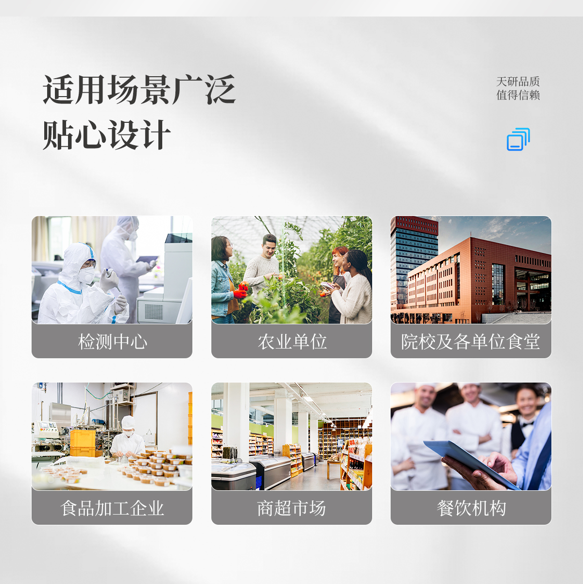 該多功能食品安全檢測儀為集成化食品安全快速檢測分析設(shè)備,廣泛應(yīng)用于市場監(jiān)管局、食品肉產(chǎn)品深加工企業(yè)、學(xué)校食堂、衛(wèi)生部門、畜牧部門、屠宰場、檢驗(yàn)檢疫部門等單位使用。