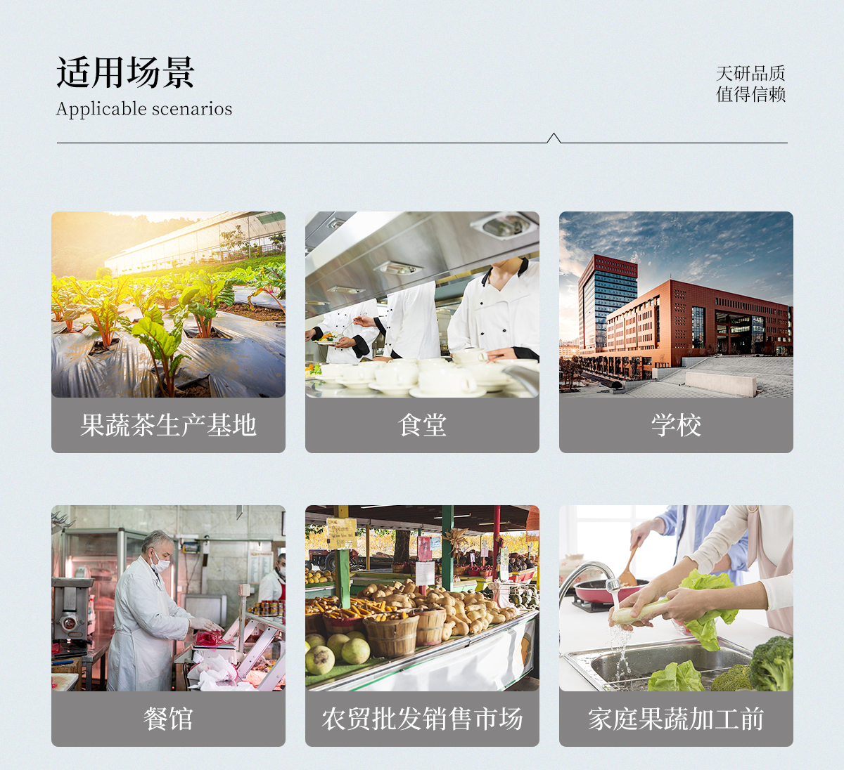 廣泛應(yīng)用于主要用于蔬菜、水果、茶葉、糧食、農(nóng)副產(chǎn)品等食品中有機磷和氨基甲酸酯類農(nóng)藥殘留的快速檢測;此外還可用于果蔬茶生產(chǎn)基地和農(nóng)貿(mào)批發(fā)銷售市場現(xiàn)場檢測,餐館、學(xué)校、食堂、家庭果蔬加工前的安全速測等。