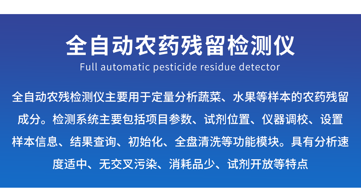 產(chǎn)品簡介: 天研全自動農(nóng)藥殘留檢測儀YT-NY2000,檢測標(biāo)準(zhǔn):依據(jù)國家標(biāo)準(zhǔn)方法(GB/T5009.199-2003)以及世界衛(wèi)生組織WHO、世界糧農(nóng)組織FAO殘留農(nóng)藥檢測標(biāo)準(zhǔn)、世界環(huán)境保護(hù)局EPA參照攝入量等要求來設(shè)計(jì)。采用酶抑制率比色法對水果、蔬菜等農(nóng)林產(chǎn)品中有機(jī)磷和氨基甲酸酯類農(nóng)藥含量進(jìn)行快速準(zhǔn)確的檢測。 廣