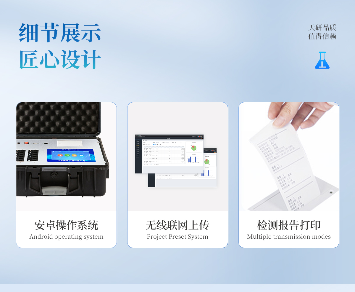 | 機箱采用工業(yè)級ABS工程塑料箱,方便攜帶,穩(wěn)固耐用,便于流動測試。 | 智能操作系統(tǒng),采用更加人性化操作,主控采用多核處理器,主頻1.88Ghz,運轉(zhuǎn)速度更快速,穩(wěn)定性更強。 | 自動判斷樣品是否合格,檢測結(jié)果更加直觀。 | 儀器具有100多種蔬菜名稱菜單庫,分類管理,并可按需添加或刪除蔬菜名,編輯蔬菜名稱,可直接打印出蔬菜名稱。 | 檢測通道:6個檢測通道,可以同時測試多個樣品,循環(huán)檢測,即放即檢,每個樣品由程序控制分別獨立工作,不會互相干擾。 | 儀器具有wifi聯(lián)網(wǎng)功能,可將數(shù)據(jù)快速上傳電腦,進(jìn)行數(shù)據(jù)管理與統(tǒng)計,4G信號GPRS遠(yuǎn)傳功能,可插手機卡實現(xiàn)數(shù)據(jù)遠(yuǎn)傳平臺,。 | 顯示方式:7英寸高靈敏真彩觸摸屏顯示,人性化中文操作界面,讀數(shù)直觀、簡單。 | 打印機采用串口5v打印,可選擇手動打印或者自動打印,三分鐘出打印結(jié)果,打印格式為檢測人姓名、吸光度差值、檢測時間、檢測機構(gòu)、樣品名稱及結(jié)果判定。 | 光源采用進(jìn)口超高亮發(fā)光二極管,具有低功耗、高精度、穩(wěn)定性強、光源可控可以關(guān)掉不使用的光源,響應(yīng)速度快等優(yōu)點。 | 智能恒流穩(wěn)壓,光強自動校準(zhǔn),長時間連續(xù)工作光源無溫漂現(xiàn)象。 | 采用USB2.0接口設(shè)計,方便數(shù)據(jù)的存貯和移動,并可隨時與計算機直接相連,并且可用計算機控制儀器。實現(xiàn)數(shù)據(jù)查詢、瀏覽、分析、統(tǒng)計、打印等。 | 智能化程度高,儀器具有自檢功能:具有開機自檢和調(diào)零功能,具有自動檢測重復(fù)性功能 | 儀器具有自身保護(hù)功能,可設(shè)置用戶名及密碼,防止非工作人員操作等。 | 采用DC12v直流供電,安全系統(tǒng)更高,并且配備6A鋰電池充電器。 | 儀器具有重新校準(zhǔn)、鎖定、恢復(fù)出廠設(shè)置功能。 |