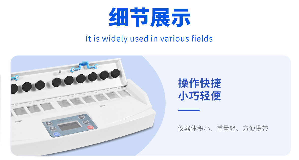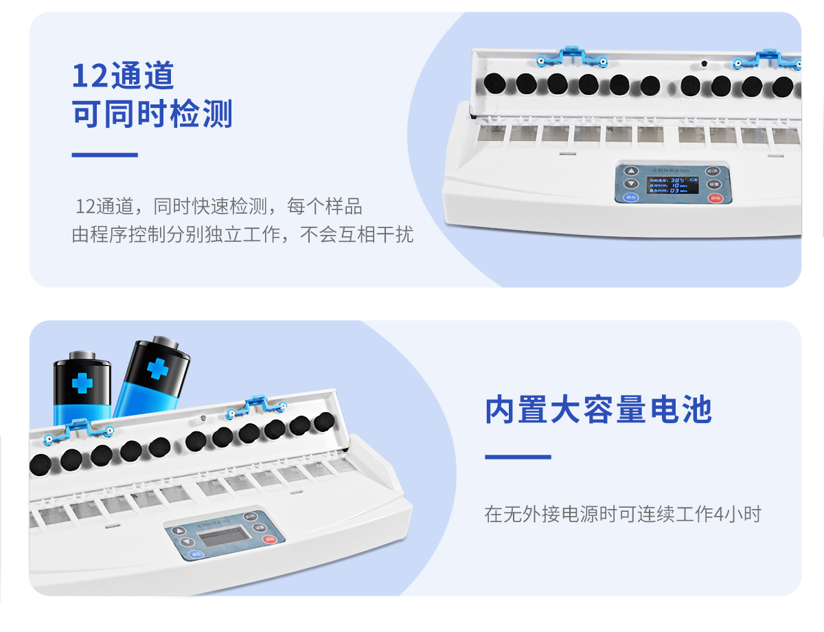 | ◆ 12通道,同時快速檢測,每個樣品由程序控制分別獨(dú)立工作,不會互相干擾 | ◆ 儀器體積小、重量輕、無配件,方便攜帶 | ◆ 操作快捷,尤其適合現(xiàn)場使用 | ◆內(nèi)置大容量電池,在無外接電源時可連續(xù)工作4小時 | ◆ 提供完備的附件配置,采用美觀、耐用的鋁合金包裝箱 | ◆ 采用新型儀器結(jié)構(gòu)設(shè)計(jì),體積小,便于攜帶。無機(jī)械移動部件,抗干擾、抗振動,檢測精度高,儀器壽命長 |