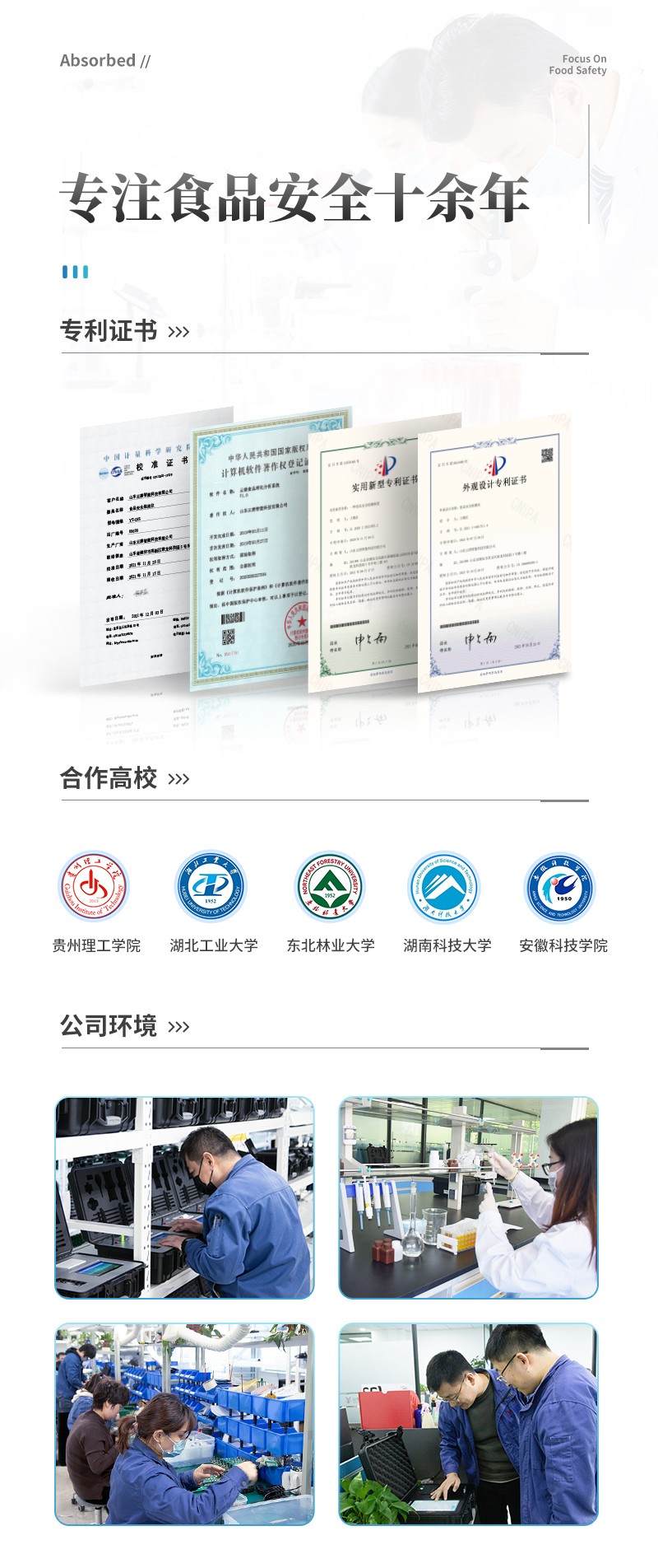 | 儀器采用臺(tái)式一體化系統(tǒng)檢測(cè)技術(shù),將分光光度模塊、新型農(nóng)殘檢測(cè)模塊、數(shù)字化管理模塊、無(wú)線(xiàn)通訊模塊高度集成于一體,支持檢測(cè)200種食品安全檢測(cè)項(xiàng)目,同時(shí)預(yù)留升級(jí)檢測(cè)方法。 | 儀器檢測(cè)模塊標(biāo)準(zhǔn)化、智能化,可隨意自由組合。檢測(cè)箱體內(nèi)置多個(gè)標(biāo)準(zhǔn)檢測(cè)單元,檢測(cè)模塊可以調(diào)整配置。 | 儀器采用全新安卓智能系統(tǒng),主控芯片采用 ARM Cortex-A7,RK3288/4核處理器,10.1寸高清液晶觸摸豎屏,更加**的UI交互界面,運(yùn)轉(zhuǎn)快捷;儀器配備無(wú)線(xiàn)通信模塊: 4G(APN)通訊模塊、Wifi模塊,藍(lán)牙傳輸,同時(shí)具有雙USB接口以及RJ45接口能以多種方式實(shí)現(xiàn)數(shù)據(jù)保存和數(shù)據(jù)傳輸功能。 | 創(chuàng)新檢測(cè)模式: | ★檢測(cè)通道:≥12通道;采用精密旋轉(zhuǎn)比色池設(shè)計(jì),使用同芯片同光源校準(zhǔn)精度,解決不同光源之間的誤差值。1-12通道間誤差0.1%。(**號(hào):ZL202022821055.2) | ★儀器具有自動(dòng)識(shí)別比色皿檢測(cè)功能,即:將樣品比色皿放入儀器后,點(diǎn)擊樣品檢測(cè),儀器自動(dòng)識(shí)別比色皿進(jìn)行通道檢測(cè)。 | 進(jìn)口高精光源: | 高精度進(jìn)口四波長(zhǎng)冷光源,通道配置 410、520、590、630nm 波長(zhǎng)光源,一個(gè)光源芯片驅(qū)動(dòng)一個(gè)光源,誤差極小,每臺(tái)設(shè)備單獨(dú)**校準(zhǔn)光源,**比對(duì),同時(shí)參照四種不同波段光源全方位覆蓋市面上99%的農(nóng)殘食品項(xiàng)目檢測(cè)。 | 智能化操作系統(tǒng): | 便捷操作系統(tǒng):設(shè)備檢測(cè)時(shí)可在同一檢測(cè)界面自動(dòng)對(duì)應(yīng)相關(guān)檢測(cè)通道一次性選擇1-12個(gè)樣品名稱(chēng),無(wú)須退出界面,節(jié)省操作時(shí)間。 | 數(shù)據(jù)集成系統(tǒng):設(shè)備首頁(yè)自動(dòng)統(tǒng)計(jì)檢測(cè)數(shù)據(jù)包含:周檢測(cè)數(shù)據(jù)、月檢測(cè)數(shù)據(jù),全部檢測(cè)總數(shù)量,均包含檢測(cè)總數(shù),合格數(shù),不合格數(shù),以及相關(guān)柱形分析圖,對(duì)各項(xiàng)檢測(cè)數(shù)據(jù)清晰掌握,無(wú)需電腦查詢(xún),更加快捷直觀。 | 項(xiàng)目預(yù)設(shè)系統(tǒng):支持添加單個(gè)及多個(gè)相同或不相同的任務(wù)預(yù)設(shè),一鍵快速調(diào)取,每一個(gè)任務(wù)分別可以設(shè)置不同的樣品、批次、編號(hào)、來(lái)源、備注、抽樣信息、檢測(cè)信息、受檢信息、復(fù)核信息等更多信息。無(wú)縫鏈接平臺(tái)和APP實(shí)時(shí)查看下發(fā)任務(wù)。 | 數(shù)據(jù)監(jiān)管系統(tǒng):同步對(duì)接監(jiān)管平臺(tái),數(shù)據(jù)可局域網(wǎng)和互聯(lián)網(wǎng)數(shù)據(jù)上傳,檢測(cè)結(jié)果可選擇直接傳至食品安全監(jiān)管平臺(tái)。集成OSS輸出存儲(chǔ)服務(wù)、區(qū)分設(shè)備定向管理應(yīng)用,進(jìn)行區(qū)域食品安全監(jiān)管及大數(shù)據(jù)分析處理與數(shù)據(jù)統(tǒng)計(jì),檢測(cè)區(qū)域食品安全長(zhǎng)短期動(dòng)態(tài),達(dá)到食品安全問(wèn)題預(yù)估、預(yù)警。 | 自定義打印系統(tǒng):內(nèi)置全新打印系統(tǒng),新創(chuàng)自定義打印方式,可按需靈活設(shè)置開(kāi)啟或關(guān)閉:產(chǎn)品合格證(國(guó)家農(nóng)業(yè)部標(biāo)準(zhǔn)要求),二維碼,抽樣信息、檢測(cè)信息,受檢信息、復(fù)核信息、抽樣日期、檢測(cè)日期等信息的打印。 | 系統(tǒng)遠(yuǎn)程更新功能:可定向分客戶(hù)分儀器更新系統(tǒng),按照不同客戶(hù)后期實(shí)際需求添加項(xiàng)目,無(wú)需機(jī)器返廠(chǎng),即可遠(yuǎn)程實(shí)時(shí)升級(jí)全新系統(tǒng),節(jié)省時(shí)間成本及避免運(yùn)輸造成設(shè)備損壞。 | 儀器主機(jī)采用一體化防水、抗壓、防撞擊、防腐蝕箱體設(shè)計(jì),同時(shí)配備交直流供電,可連接車(chē)載電源,可選配大容量充電鋰電池,滿(mǎn)足現(xiàn)場(chǎng)野外檢測(cè)需求。 | 安全證書(shū),放心保障:儀器具有中國(guó)計(jì)量科學(xué)研究院校準(zhǔn)證書(shū),**認(rèn)證。 |