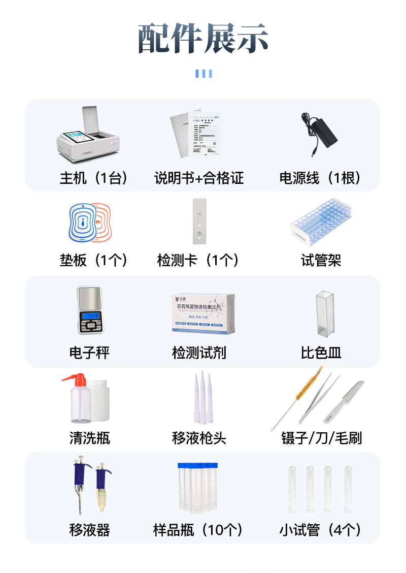 | 儀器采用臺(tái)式一體化系統(tǒng)檢測(cè)技術(shù),將分光光度模塊、新型農(nóng)殘檢測(cè)模塊、數(shù)字化管理模塊、無(wú)線通訊模塊高度集成于一體,支持檢測(cè)200種食品安全檢測(cè)項(xiàng)目,同時(shí)預(yù)留升級(jí)檢測(cè)方法。 | 儀器檢測(cè)模塊標(biāo)準(zhǔn)化、智能化,可隨意自由組合。檢測(cè)箱體內(nèi)置多個(gè)標(biāo)準(zhǔn)檢測(cè)單元,檢測(cè)模塊可以調(diào)整配置。 | 儀器采用全新安卓智能系統(tǒng),主控芯片采用 ARM Cortex-A7,RK3288/4核處理器,10.1寸高清液晶觸摸豎屏,更加**的UI交互界面,運(yùn)轉(zhuǎn)快捷;儀器配備無(wú)線通信模塊: 4G(APN)通訊模塊、Wifi模塊,藍(lán)牙傳輸,同時(shí)具有雙USB接口以及RJ45接口能以多種方式實(shí)現(xiàn)數(shù)據(jù)保存和數(shù)據(jù)傳輸功能。 | 創(chuàng)新檢測(cè)模式: | ★檢測(cè)通道:≥12通道;采用精密旋轉(zhuǎn)比色池設(shè)計(jì),使用同芯片同光源校準(zhǔn)精度,解決不同光源之間的誤差值。1-12通道間誤差0.1%。(**號(hào):ZL202022821055.2) | ★儀器具有自動(dòng)識(shí)別比色皿檢測(cè)功能,即:將樣品比色皿放入儀器后,點(diǎn)擊樣品檢測(cè),儀器自動(dòng)識(shí)別比色皿進(jìn)行通道檢測(cè)。 | 進(jìn)口高精光源: | 高精度進(jìn)口四波長(zhǎng)冷光源,通道配置 410、520、590、630nm 波長(zhǎng)光源,一個(gè)光源芯片驅(qū)動(dòng)一個(gè)光源,誤差極小,每臺(tái)設(shè)備單獨(dú)**校準(zhǔn)光源,**比對(duì),同時(shí)參照四種不同波段光源全方位覆蓋市面上99%的農(nóng)殘食品項(xiàng)目檢測(cè)。 | 智能化操作系統(tǒng): | 便捷操作系統(tǒng):設(shè)備檢測(cè)時(shí)可在同一檢測(cè)界面自動(dòng)對(duì)應(yīng)相關(guān)檢測(cè)通道一次性選擇1-12個(gè)樣品名稱,無(wú)須退出界面,節(jié)省操作時(shí)間。 | 數(shù)據(jù)集成系統(tǒng):設(shè)備首頁(yè)自動(dòng)統(tǒng)計(jì)檢測(cè)數(shù)據(jù)包含:周檢測(cè)數(shù)據(jù)、月檢測(cè)數(shù)據(jù),全部檢測(cè)總數(shù)量,均包含檢測(cè)總數(shù),合格數(shù),不合格數(shù),以及相關(guān)柱形分析圖,對(duì)各項(xiàng)檢測(cè)數(shù)據(jù)清晰掌握,無(wú)需電腦查詢,更加快捷直觀。 | 項(xiàng)目預(yù)設(shè)系統(tǒng):支持添加單個(gè)及多個(gè)相同或不相同的任務(wù)預(yù)設(shè),一鍵快速調(diào)取,每一個(gè)任務(wù)分別可以設(shè)置不同的樣品、批次、編號(hào)、來(lái)源、備注、抽樣信息、檢測(cè)信息、受檢信息、復(fù)核信息等更多信息。無(wú)縫鏈接平臺(tái)和APP實(shí)時(shí)查看下發(fā)任務(wù)。 | 數(shù)據(jù)監(jiān)管系統(tǒng):同步對(duì)接監(jiān)管平臺(tái),數(shù)據(jù)可局域網(wǎng)和互聯(lián)網(wǎng)數(shù)據(jù)上傳,檢測(cè)結(jié)果可選擇直接傳至食品安全監(jiān)管平臺(tái)。集成OSS輸出存儲(chǔ)服務(wù)、區(qū)分設(shè)備定向管理應(yīng)用,進(jìn)行區(qū)域食品安全監(jiān)管及大數(shù)據(jù)分析處理與數(shù)據(jù)統(tǒng)計(jì),檢測(cè)區(qū)域食品安全長(zhǎng)短期動(dòng)態(tài),達(dá)到食品安全問(wèn)題預(yù)估、預(yù)警。 | 自定義打印系統(tǒng):內(nèi)置全新打印系統(tǒng),新創(chuàng)自定義打印方式,可按需靈活設(shè)置開(kāi)啟或關(guān)閉:產(chǎn)品合格證(國(guó)家農(nóng)業(yè)部標(biāo)準(zhǔn)要求),二維碼,抽樣信息、檢測(cè)信息,受檢信息、復(fù)核信息、抽樣日期、檢測(cè)日期等信息的打印。 | 系統(tǒng)遠(yuǎn)程更新功能:可定向分客戶分儀器更新系統(tǒng),按照不同客戶后期實(shí)際需求添加項(xiàng)目,無(wú)需機(jī)器返廠,即可遠(yuǎn)程實(shí)時(shí)升級(jí)全新系統(tǒng),節(jié)省時(shí)間成本及避免運(yùn)輸造成設(shè)備損壞。 | 儀器主機(jī)采用一體化防水、抗壓、防撞擊、防腐蝕箱體設(shè)計(jì),同時(shí)配備交直流供電,可連接車載電源,可選配大容量充電鋰電池,滿足現(xiàn)場(chǎng)野外檢測(cè)需求。 | 安全證書(shū),放心保障:儀器具有中國(guó)計(jì)量科學(xué)研究院校準(zhǔn)證書(shū),**認(rèn)證。 |