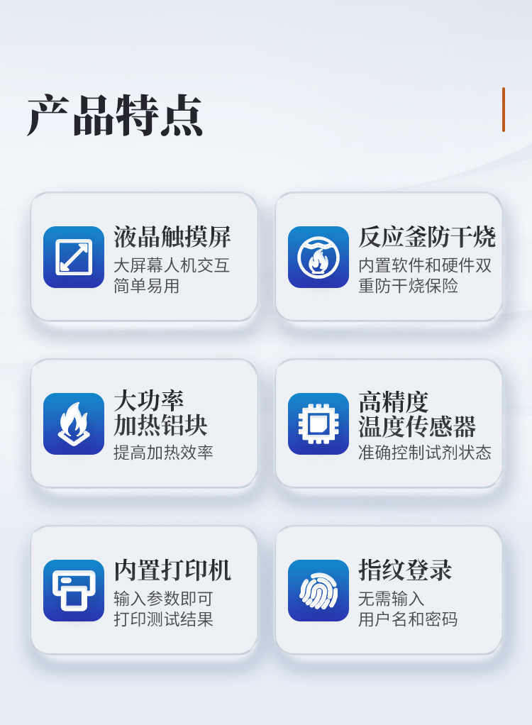 | 1. ☆采用濾袋技術(shù),濾袋孔徑25μm | 2. 耐腐蝕、耐高壓、特殊處理消煮鍋,安全可靠,經(jīng)久耐用 | 3. 彩色液晶觸摸屏,界面簡潔,操作簡單 | 4. **批處理能力,批處理能力為30個/批,效率高,節(jié)省試劑 | 5. 手動根據(jù)樣品數(shù)量添加試劑,降低使用成本 | 6. ☆**間歇攪拌技術(shù),模擬手工攪拌,使樣品處理更均勻,攪拌徹底、均勻,無試劑漏液風險,安全可靠,攪拌速度15圈/分鐘,間歇周期1分鐘 | 7. 全面的監(jiān)控配置,包括試劑量、溫度、壓力監(jiān)測 | 8. ☆儀器采用高壓密閉測試,無需冷卻水,節(jié)水環(huán)保 | 9. 儀器可以直接在普通實驗室環(huán)境,無需通風櫥 | 10. 儀器內(nèi)部無危險的玻璃材質(zhì)器件,安全可靠 |