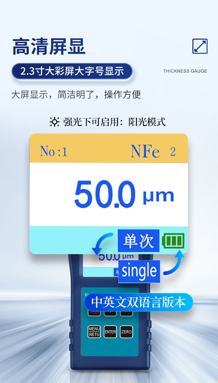 產(chǎn)品簡(jiǎn)介: 天研涂層測(cè)厚儀采用磁性和電渦流兩種測(cè)量方法,可檢測(cè)磁性金屬基體上非磁性覆蓋層的厚度(如鋼鐵合金和硬磁性鋼上的鋁、鉻、銅、鋅、錫、橡膠、油漆等),以及非磁性金屬基體上非導(dǎo)電的絕緣覆蓋層的厚度(如鋁、銅、鋅、錫上的橡膠、塑料、油漆、氧化膜等)。 涂層測(cè)厚儀應(yīng)用在電鍍、防腐、