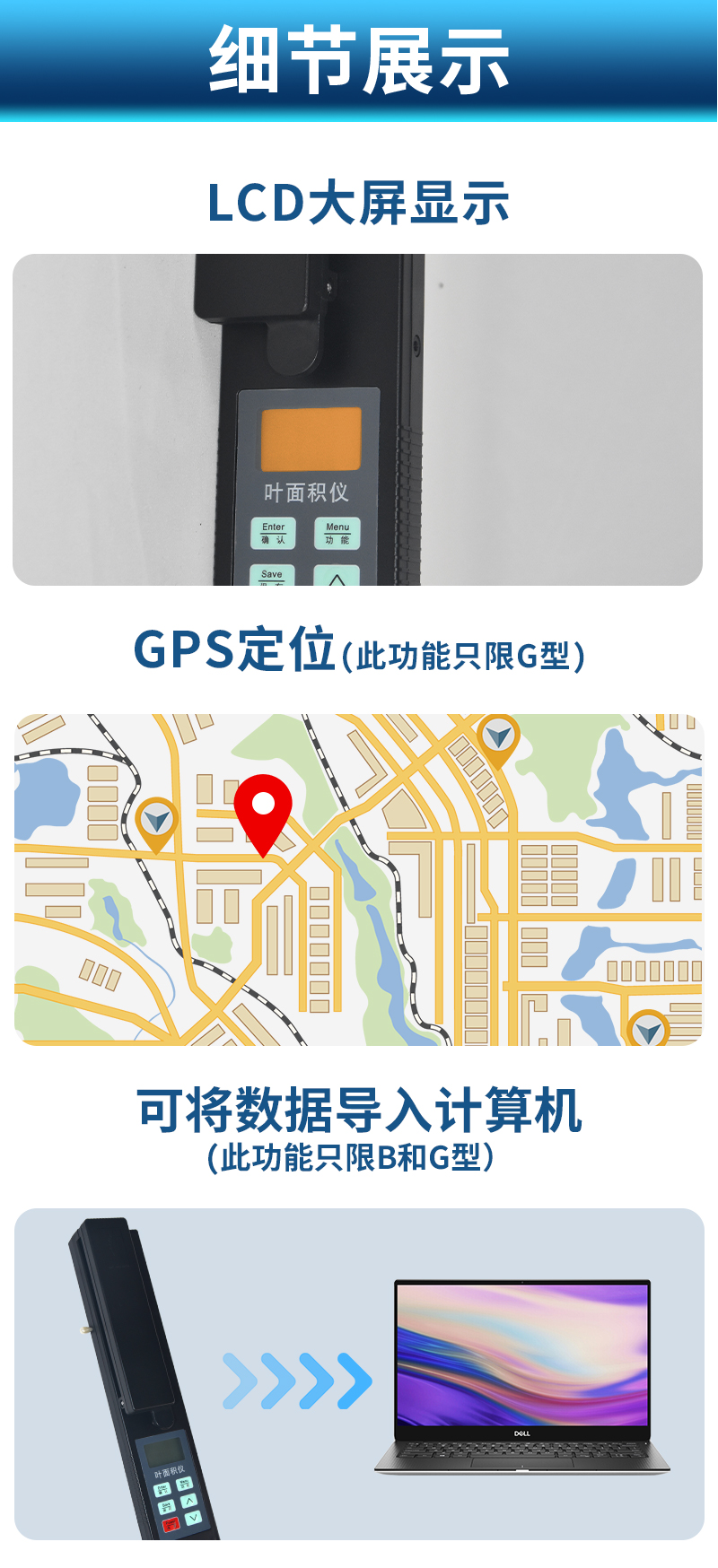 儀器可以直接測量葉片長度、寬度和面積,并集成了GPS定位系統(tǒng),增加了RS232接口,可將測量數(shù)據(jù)和定位信息同時(shí)導(dǎo)入計(jì)算機(jī),方便廣大科研者對數(shù)據(jù)的進(jìn)一步處理。