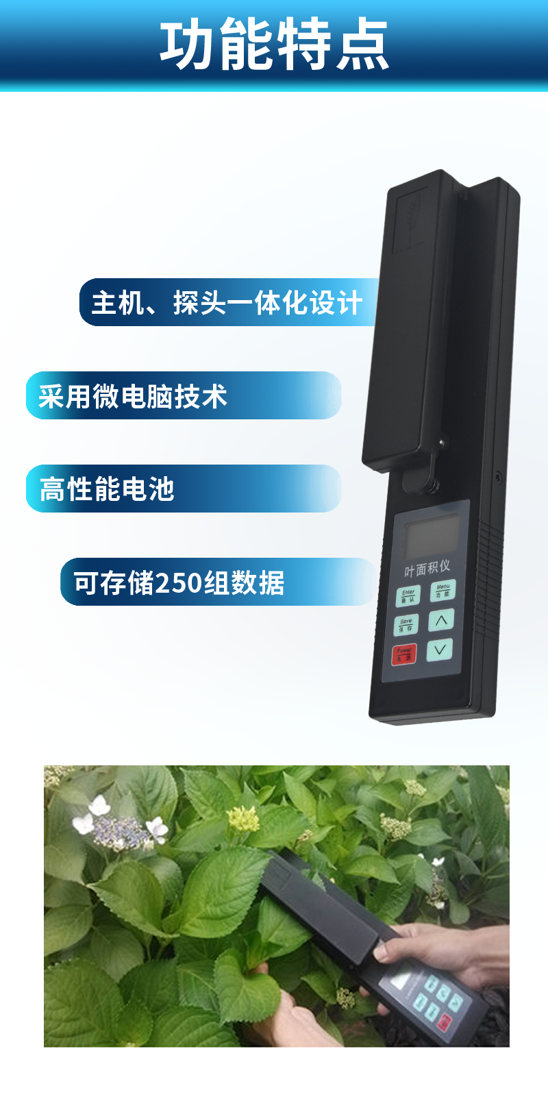 | 1)主機(jī)、探頭一體化設(shè)計(jì),更方便操作。 | 2)采用微電腦技術(shù),LCD大液晶顯示。 | 3)高性能電池,無需外部供電,低電壓顯示,更適用于野外測量。 | 4)一次性可測量較大葉片面積(1000*155mm2) | 5)可存儲250組數(shù)據(jù)(葉面積、葉長、葉寬)。 | 6)可測量葉片的多種參數(shù):葉面積、平均葉面積、葉長、葉寬。 | 7)通訊接口:RSR232接口,可將數(shù)據(jù)導(dǎo)入計(jì)算機(jī)。(此功能只限B和G型) | 8)GPS定位:集成高速GPS定位模塊,上傳數(shù)據(jù)都自帶時(shí)間、經(jīng)緯度信息,方便更有效的 |