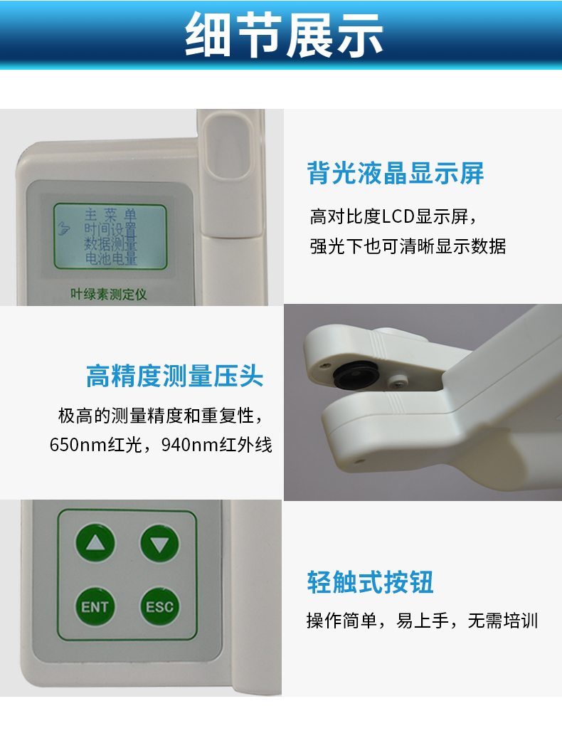 儀器用途:葉綠素測(cè)定儀可 以即時(shí)測(cè)量植物的葉綠素相對(duì)含量(單位SPAD)或綠色程度、葉面溫度,從而解植物真實(shí)的硝基需求量并且了解土壤硝基的缺乏程度或是否過多地施加了氮肥。 可以通過此款儀器來增加氮肥的利用率,并可保護(hù)環(huán)境。可廣泛應(yīng)用于農(nóng)林相關(guān)科研單位和高校對(duì)植物生理指標(biāo)的研究和農(nóng)業(yè)生產(chǎn)的指導(dǎo)。工作原理:根據(jù)