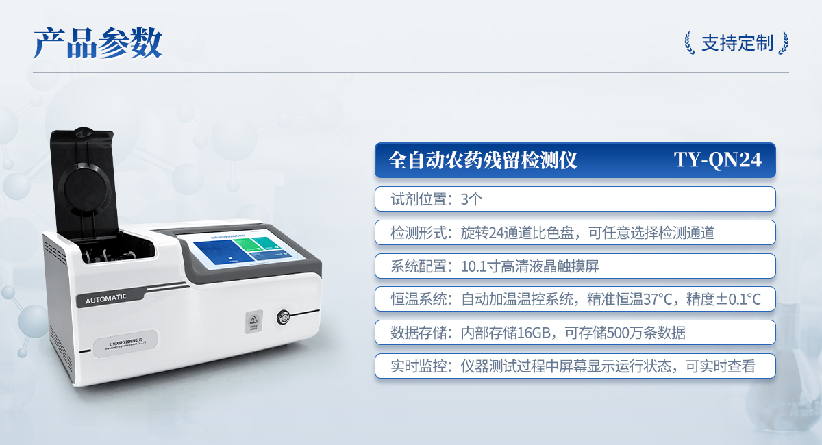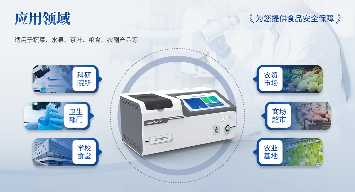 全自動農(nóng)藥殘留檢測儀是依據(jù)國家標準方法(GB/T5009.199-2003),采用酶抑制率比色法對水果、蔬菜等農(nóng)產(chǎn)品中有機磷和氨基甲酸酯類農(nóng)藥含量進行快速準確的檢測。該設備廣泛應用于蔬菜批發(fā)市場、超市、商場、食藥監(jiān)等部門的蔬菜和水果中的農(nóng)藥殘留檢測。