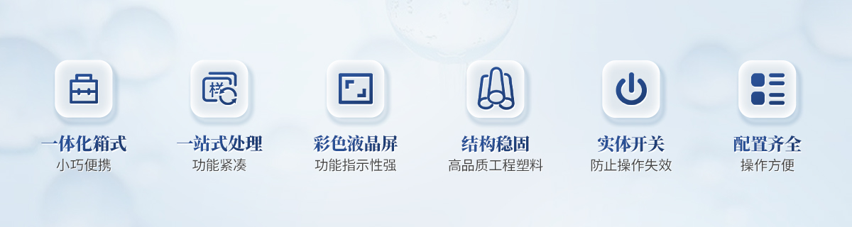 | 1、功能緊湊,集成五種樣品前處理常用的功能,完成樣品一站式處理。 | 2、結(jié)構(gòu)穩(wěn)固,機箱采用***工程塑料,具備**的抗沖擊性、耐腐蝕性、便攜性。 | 3、操作穩(wěn)定,機器采用五寸全彩色液晶屏,功能指示性強,用戶操作均為實體開關(guān),杜絕佩戴手套和液體噴濺時的操作失效。 |