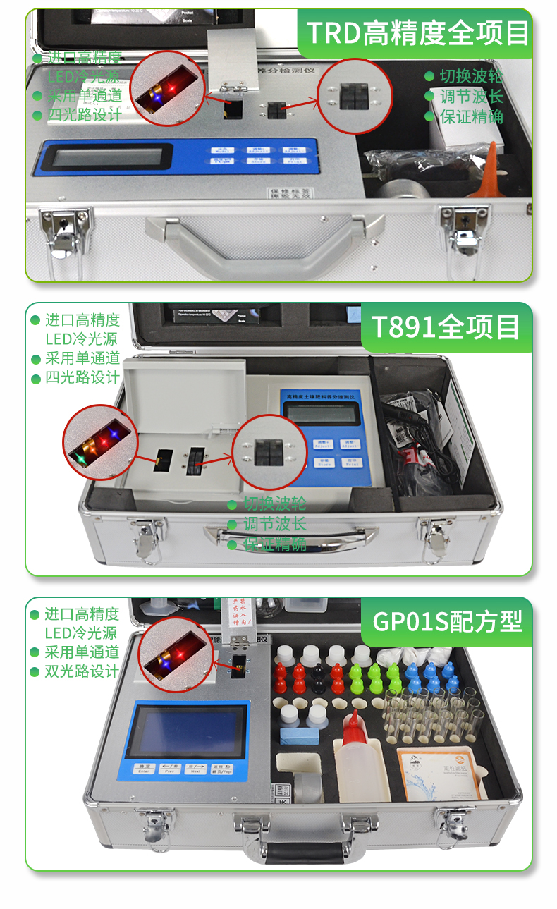 | 1、《機(jī)箱/藥劑一體式鋁合金機(jī)箱》設(shè)計(jì),便于攜帶、堅(jiān)固耐用,配套成品藥劑。 | 2、微電腦控制,數(shù)字化線路、程序化設(shè)計(jì),液晶顯示,交直流兩用,可野外流動(dòng)測(cè)試,大程度降低操作者的失誤和勞動(dòng)強(qiáng)度。 | 3、分辨率:0.001,觸摸式按鍵,內(nèi)置熱敏打印機(jī),可打印測(cè)試結(jié)果。 | 4、可檢測(cè)土壤及化肥、有機(jī)肥、植株中的速效氮、有效磷、速效鉀、全氮、全磷、全鉀、有機(jī)質(zhì)含量,土壤酸堿度,含鹽量(擴(kuò)展)。 | 5、土壤養(yǎng)分速測(cè)儀采用高亮度 LED 燈作為光源, 硅半導(dǎo)體作為信號(hào)接收系統(tǒng), 壽命長達(dá)10萬小時(shí)級(jí)別。光源穩(wěn)定,一致性好。 | 6、比色槽部分采用單通道、雙光路設(shè)計(jì),無機(jī)械位移及磨損,光路測(cè)試定位**,保證測(cè)定結(jié)果精度。 |