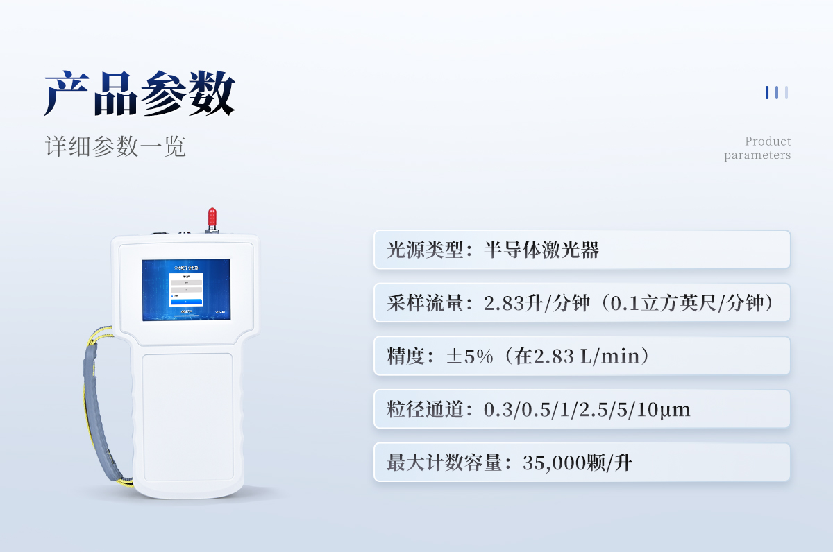 產(chǎn)品簡介: 手持塵埃粒子計數(shù)器是一種便攜式的檢測設(shè)備,專門用于快速測量空氣中的塵埃、顆粒物以及其他微小顆粒的數(shù)量和大小分布。這類儀器廣泛應(yīng)用于多個行業(yè),包括但不限于制藥、半導(dǎo)體制造、醫(yī)院手術(shù)室、無塵車間、空氣凈化器效果驗證等領(lǐng)域。 依據(jù)標(biāo)準(zhǔn): ?符合標(biāo)準(zhǔn):JJF1190-2008、
