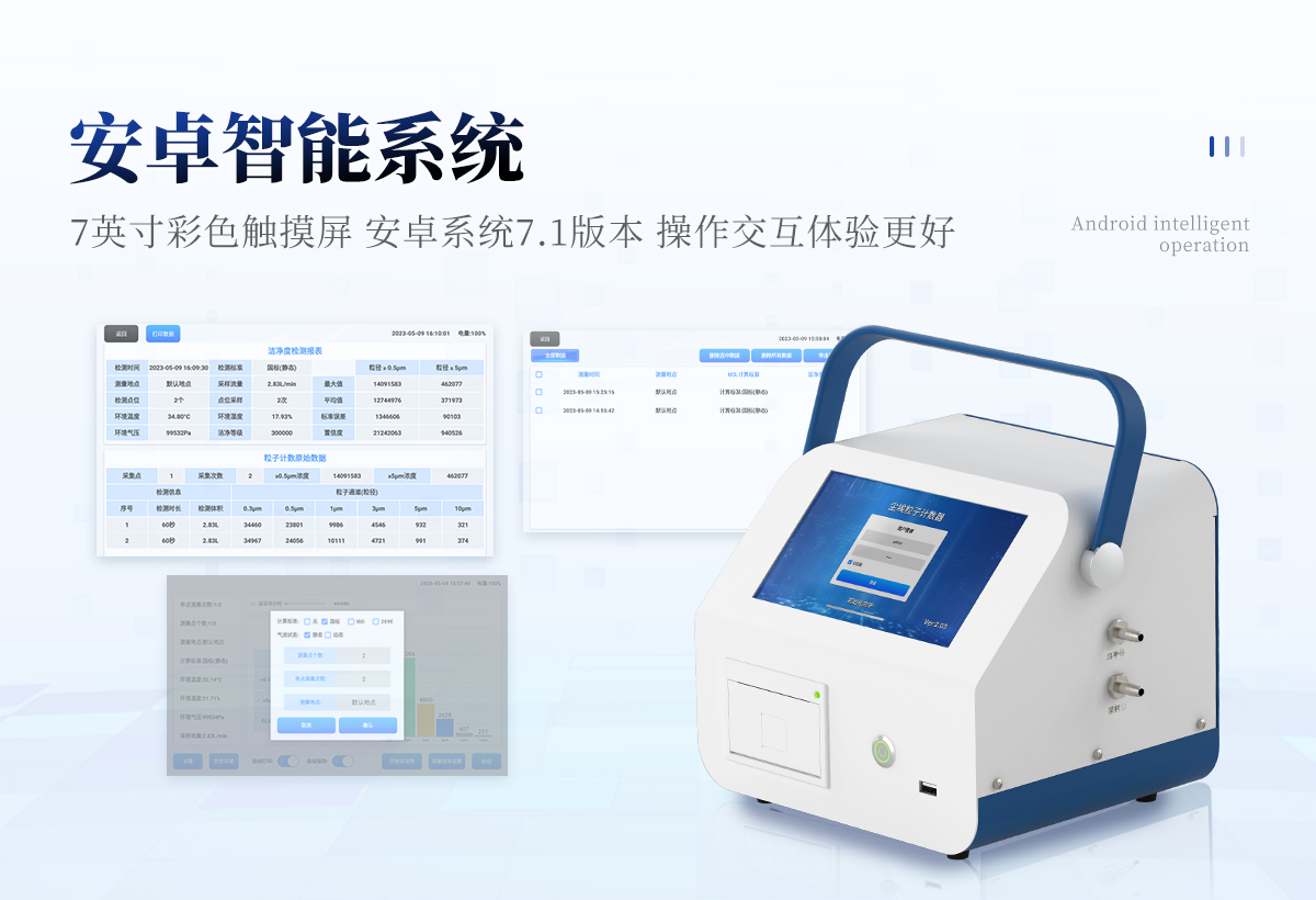 | 1、安卓系統(tǒng)7.1版本,操作交互體驗(yàn)更好。 | 2、內(nèi)置溫濕度傳感器、環(huán)境氣壓傳感器 | 3、核心部件光散射傳感器明顯消除腔體的雜散光,信噪比大為提高。從而使測(cè)量更準(zhǔn)確更可靠。 | 4、按95%置信度(UCL)計(jì)算,計(jì)數(shù)結(jié)果可換算成m3和ft3 | 5、依照凈化級(jí)別劃分和規(guī)定,自動(dòng)判定凈化級(jí)別,使用便利。 | 6、帶審計(jì)追蹤功能,可查詢、可追溯、可控制,符合FDA 21CFR PART11規(guī)范 | 7、支持wifi、藍(lán)牙傳輸,數(shù)據(jù)可無(wú)線上傳;同時(shí)支持U盤(pán)拷貝數(shù)據(jù),免驅(qū)動(dòng)插拔。 | 8、配置監(jiān)管平臺(tái),檢測(cè)結(jié)果可直接無(wú)線傳至平臺(tái),進(jìn)行潔凈度長(zhǎng)短期分析,輔助管理。 | 9、內(nèi)置新一代高速熱敏打印機(jī),可選擇所需要打印的粒徑通道,靈活打印結(jié)果。 | 10、交直流兩用,內(nèi)置充電鋰電池,環(huán)保耐用可支持連續(xù)采樣6小時(shí)以上。 | 11、便捷簡(jiǎn)易伸縮式云臺(tái)支架,安裝采樣操作更加方便。 |