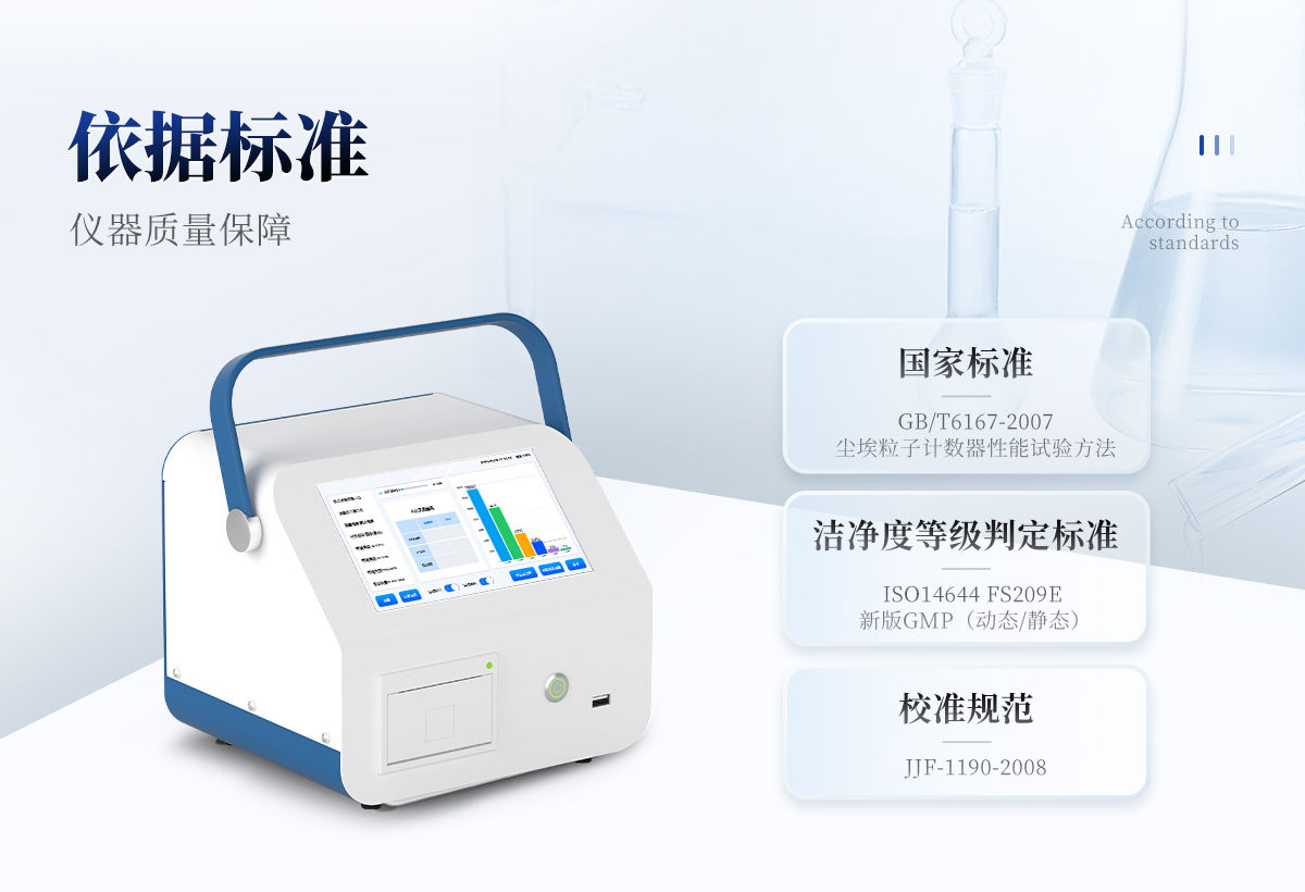 國(guó)家標(biāo)準(zhǔn):GB/T6167-2007塵埃粒子計(jì)數(shù)器性能試驗(yàn)方法 潔凈度等級(jí)判定標(biāo)準(zhǔn):ISO14644 FS209E ,新版GMP(動(dòng)態(tài)/靜態(tài)) 校準(zhǔn)規(guī)范:JJF-1190-2008