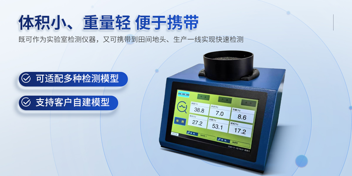 產(chǎn)品介紹: 近紅外光譜分析儀,是針對原糧、食品、飼料等行業(yè)開發(fā)的專用 檢測設(shè)備,可無損、快速、準(zhǔn)確地檢測樣本的水分、脂肪、蛋白質(zhì)等多種指標(biāo)。 儀器重量輕體積小,既可作為實(shí)驗(yàn)室檢測儀器,又可攜帶到田間地頭、生產(chǎn)一線實(shí)現(xiàn)快速檢測。儀器核心采用進(jìn)口高性能光譜分析系統(tǒng),具有體積小、性