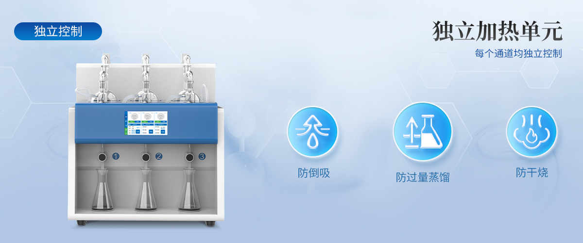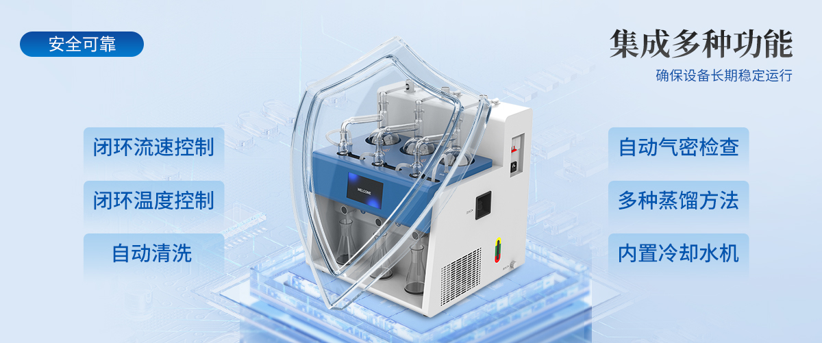 | 1.自動(dòng)化程度高:內(nèi)置冷卻水循環(huán)機(jī),實(shí)現(xiàn)全自動(dòng)化操作,提高實(shí)驗(yàn)效率與準(zhǔn)確性。 | 2.多通道獨(dú)立控制:3個(gè)加熱單元各自獨(dú)立,配備防倒吸、防過(guò)量蒸餾及防干燒保護(hù)。 | 3.智能觸控:7寸液晶觸摸屏,支持自定義保存*多1000種蒸餾方法,內(nèi)置18種國(guó)標(biāo)方法。 | 4.精準(zhǔn)控制:采用**陶瓷遠(yuǎn)紅外加熱,具備時(shí)間與重量雙重終點(diǎn)控制,確保蒸餾精度達(dá)0.1ml。 | 5.安全可靠:集成自動(dòng)清洗、自動(dòng)氣密檢查、反吹等功能,確保設(shè)備長(zhǎng)期穩(wěn)定運(yùn)行。 | 6.操作簡(jiǎn)便:一鍵啟動(dòng),支持遠(yuǎn)程O(píng)TA系統(tǒng)升級(jí),滿足不同用戶的使用需求。 |