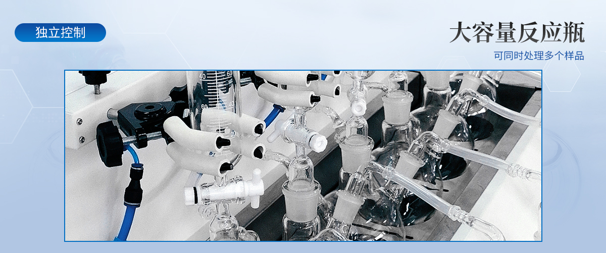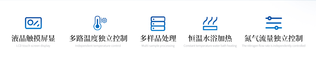 | 1.大容量反應(yīng)瓶,可同時處理多個樣品。 | 2.恒溫水浴加熱,具有快速自動恒溫控制系統(tǒng),加熱溫度可以手動設(shè)定。 | 3.每個樣品的氮?dú)饬髁开?dú)立控制調(diào)節(jié)或關(guān)閉,針閥氣體流量計(jì)準(zhǔn)確控制和顯示氣體總消耗量。 | 4.由升降位置固定旋鈕調(diào)節(jié)樣品架及配氣系統(tǒng),旋轉(zhuǎn)樣品架的升降,正面安裝樣品,操作方便。 | 5.鹽酸口、氣體進(jìn)氣口、出口三口一體且相互區(qū)分開,不干擾操作。 |