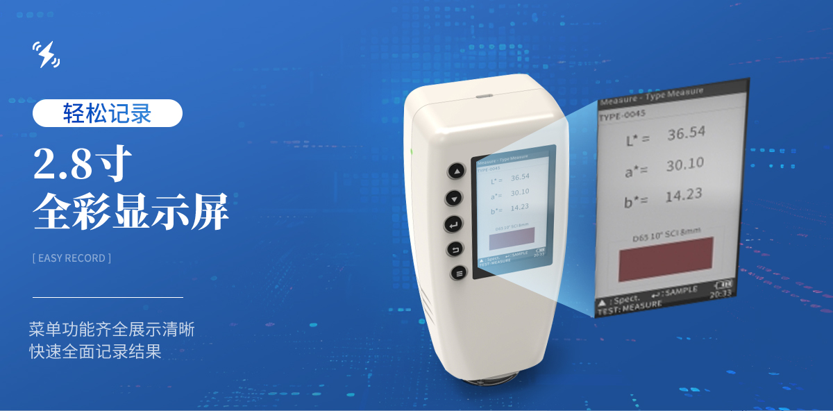 2.8寸全彩顯示屏,可輕松查閱400-700nm每個波段的光譜曲線。 菜單功能齊全展示清晰,快速全面記錄結(jié)果。 顏色標記色差顯示結(jié)果,合格與否一眼便知。 UI設(shè)計清晰明了,不再擔心誤操作。