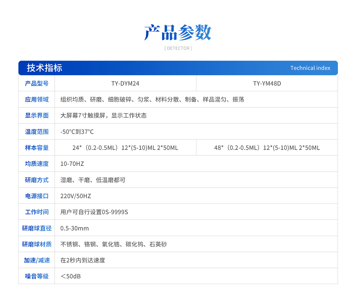 | 應(yīng)用領(lǐng)域:組織均質(zhì)、研磨、細胞破碎、勻漿、材料分散、制備、樣品混勻、振蕩 液晶顯示:大屏幕7寸觸摸屏,顯示工作狀態(tài) 溫度范圍:-50℃到37℃ 處理樣本量:24*(0.2-0.5ML)12*(5-10)ML 2*50ML 均質(zhì)速度:10-70HZ 電源:兩相220V /50HZ 工作時間:0秒-9999s,用戶可自行設(shè)定 研磨球直徑:0.5-30mm 研磨球材料:不銹鋼、鉻鋼、氧化鋯、碳化鎢、石英砂 加速:在2秒內(nèi)達到**速度 減速:在2秒內(nèi)達到**速度 噪音等級:小于50db |